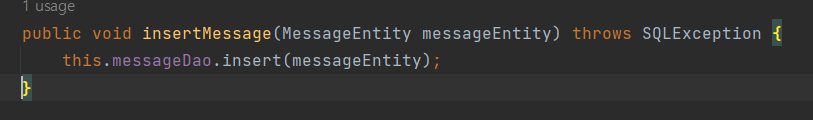 서비스에서 insertMessage 메서드 만들어 주고받는 매개변수를 MessageEntity로 하고 값을 넣어주기만 하면 되니깐 this.messageDao.insert(messageEntity)로 값을 넣어주면 됨 (서비스로 큰 처리, 다오는 디비만 처리라고 생각하면 될 듯?)그럼 이제 값이 들어갈 컨트롤러로 가야겠네