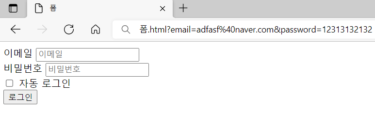 값을 넣고 난 주소에는 {키}={값}으로 이메일과 비밀번호를 알려줌.