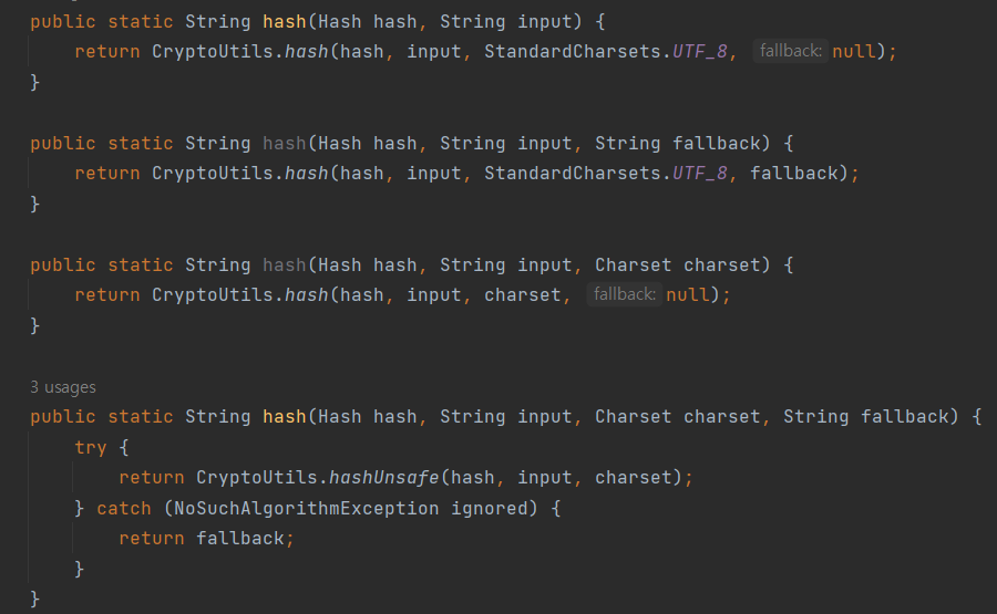 return CryptoUtils.hash(hash, input, StandardCharsets.UTF_8, fallback);