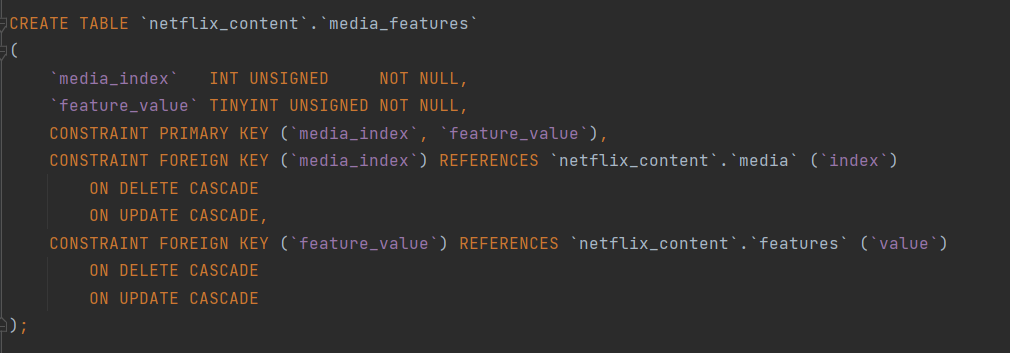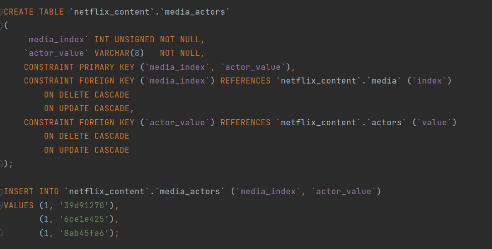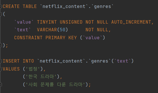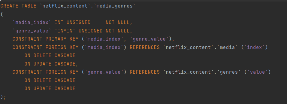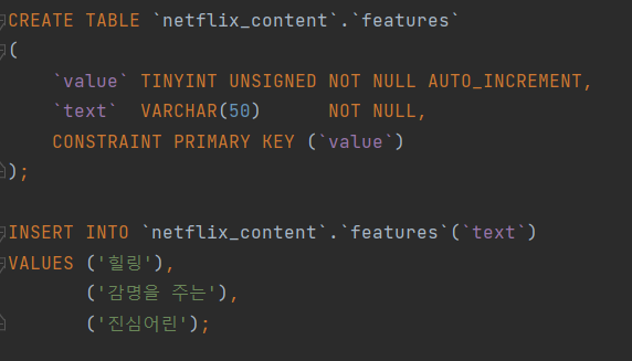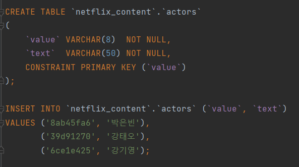 그리고 일대다의 관계를 가지는 배우, 장르, 특징에 대해서는 테이블을 하나 새로 만들어서 배우 테이블과 미디어 테이블의 값을 가지는 테이블을 만들어주자.