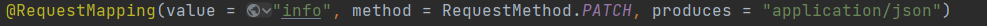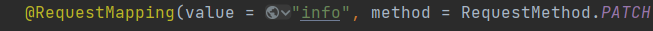 매핑 걸어주고 value의 값은 info로 걸어주고 메서드는 값을 넣어줘야 되기 때문에 PATCH로 걸어주자. 값을 넣어주는 것은 당연히 JSON을 이용하면 되겠지 그러면 String 타입과 @ResopnseBody는 당연히 적어줘야 되겠네.
