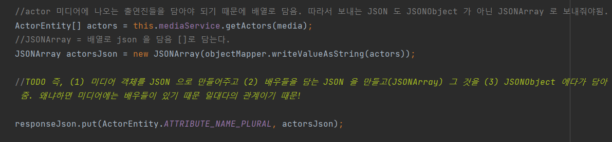 복수의 값으로 json에 담아주기 위해서 ex) actors : 박은빈, 강기양 ~~ 이런 식으로 찍기 위해서 기존에는 name_plural이 아닌 그냥 attribute 값으로 actor로 찍었음. 근데 이렇게 하면 사실 배우들이 될 텐데 그냥 배우라는 명명이 되니깐 배우들로 바꿔주는 게 확실한 처리임.