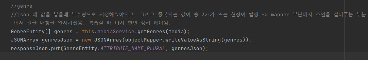미디어 관련 공부#2 에서 매퍼를 다시 작성한 부분이 있는데 여기서 그 값이 중복돼서 찍히게 됨. 따라서 매퍼를 변경했음.
