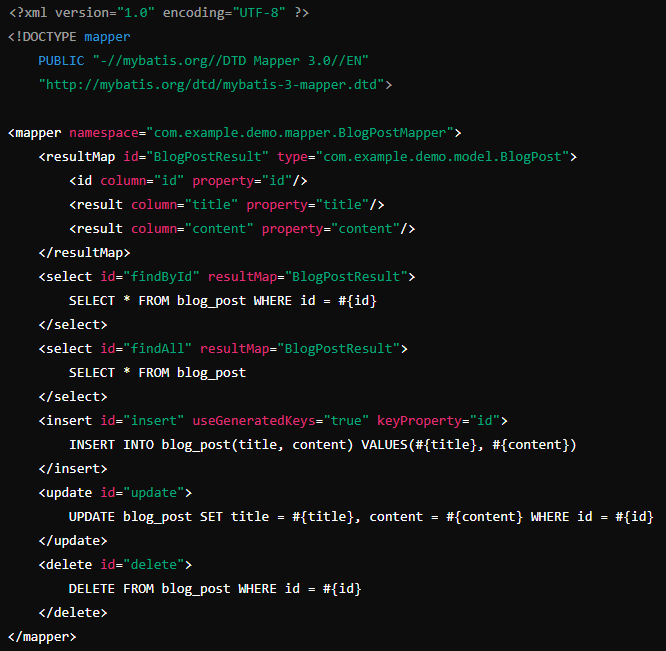 @Select("SELECT * FROM blog_post WHERE id = #{id}")